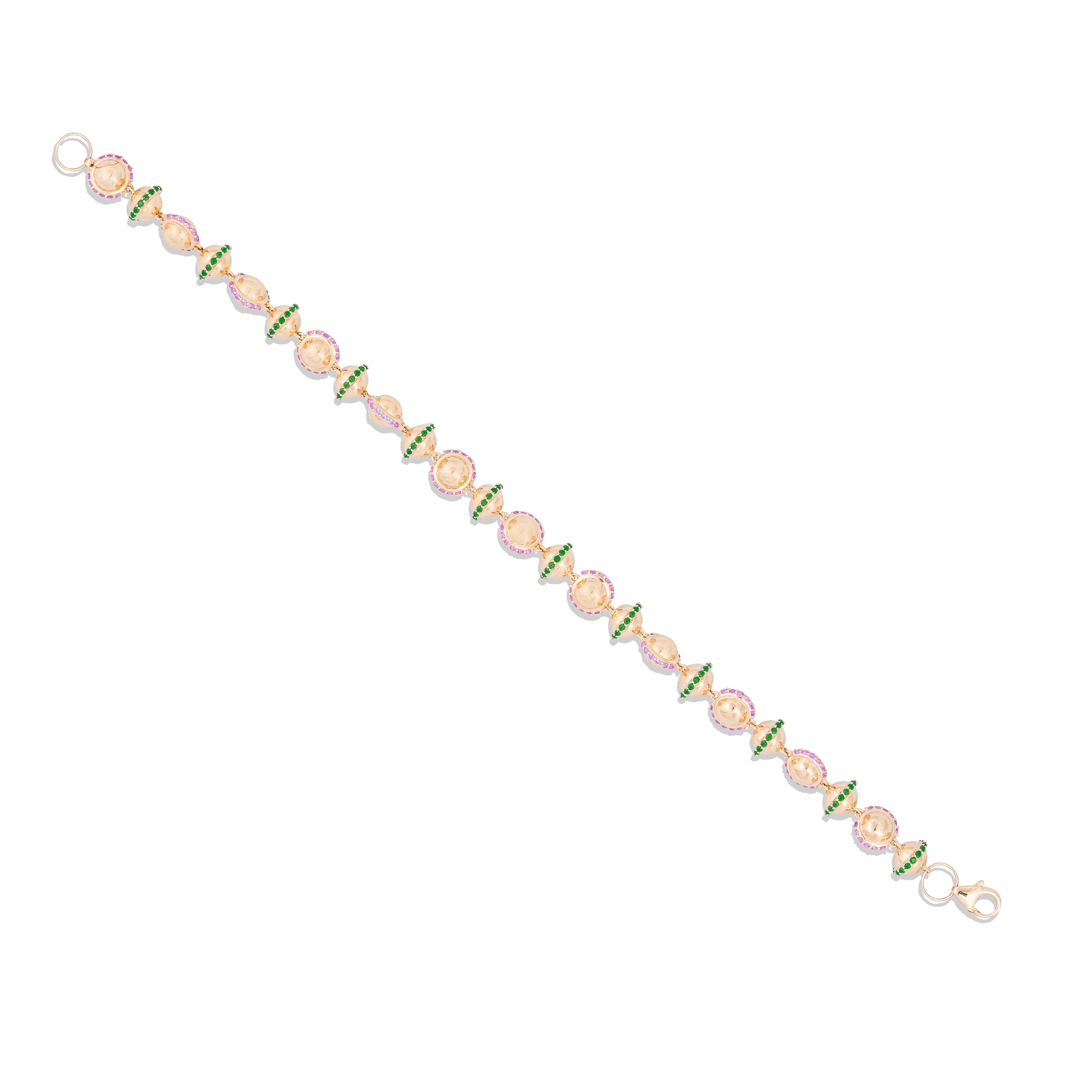 14k gold. Tsavorite & rhodolite garnet.